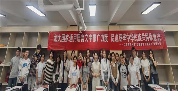 在第28届全国推广普通话宣传周期间,为深入贯彻落实习近平总书记关于铸牢中华民族共同体意识的重要论述,9月24日下午,国家语言文字推广基地(江西师范大学)联合学生处,在学校一站式学生社区红色讲堂成功举办“石榴信箱 石榴花开”朗诵比赛。活动旨在通过朗诵艺术推广国家通用语言文字,深化民族团结进步教育,增强各民族学生的交流与认同。教务处学生学习指导中心主任金绍梅、党委学工部(学生处)副部长袁蓉、江西省普通话水平测试员匡蓉蓉担任评委。